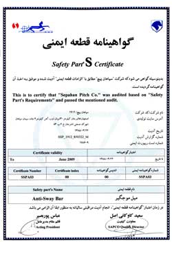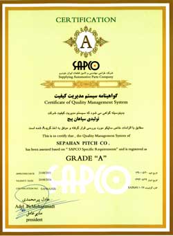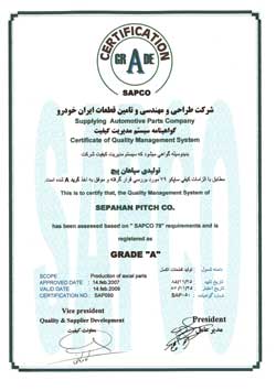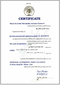 اخذ گواهينامه سيستم مديريت كيفيت گريد A ساپكو از سال1377 تا کنون در رابطه با اقلام سيستم تعليق