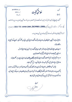 اخذ گواهينامه معتبر ISO 9001 از سال 1377 تا کنون